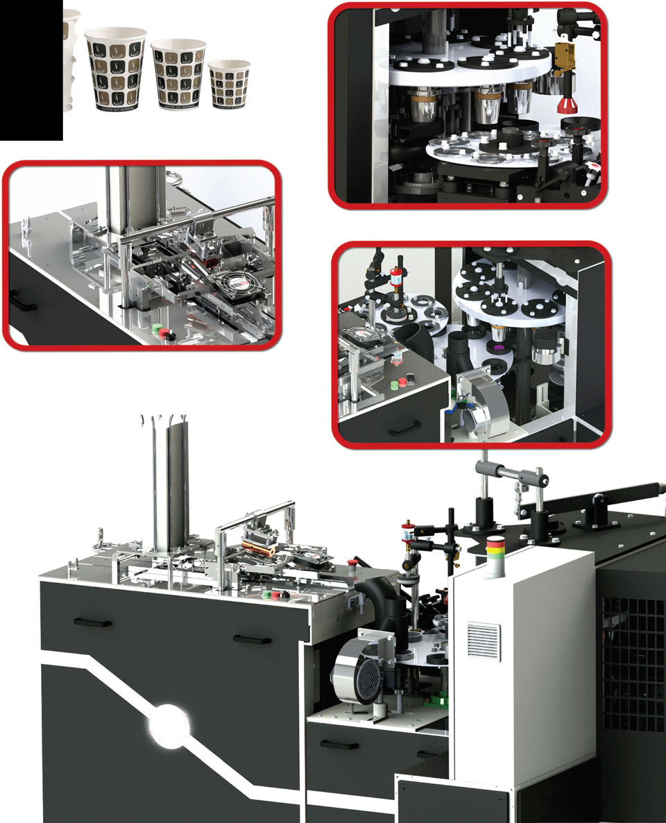 Machine for making paper cups M/KB Series are automatic environmetal machine with multiple program structure. The metarials used, such as paper, silicone oil, are completely healthy and environmentally friendly. Our machines are suitable fort he use of SINGLE- AND DOUBLE-SIDED PE COATED paper. It is the ideal equipment fort he production of cups used in every are of your life, providing ease of use with hot and cold beverages.